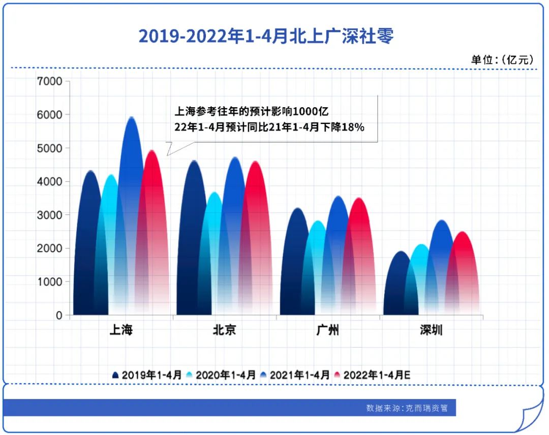 散發疫情導致市場經常性短暫停擺,商場銷售去化及商場運營難度進一步加大。2022年至今,上海疫情影響最大,參考往年預計影響或將超過1000億元,1-4月預計社會消費品零售總額同比下降18%。
