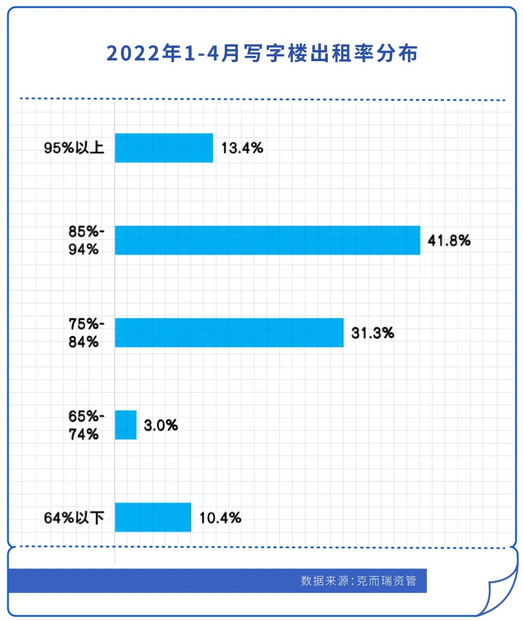 從租金收繳率來看,僅7.5%的項目100%收繳無拖延,70.2%的寫字樓租金收繳率出現下跌。