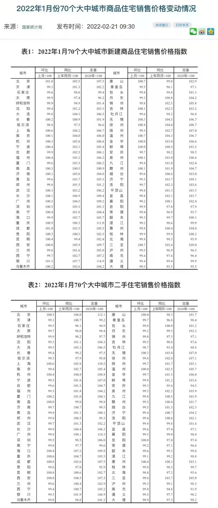 1、樓市最壞的時候過去了,1月數據其實反倒很有意義。國統局數據很說明問題,2022年2月21日,國統局70城商品住宅銷售價格變動情況數據披露,2022年1月份商品住宅銷售價格環比降勢減弱,同比漲幅總體回落。