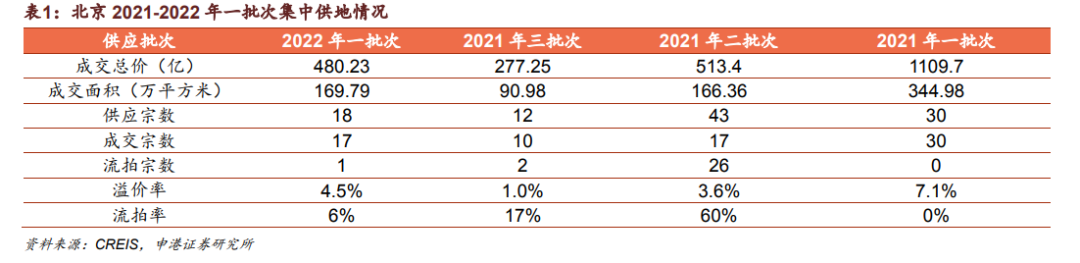 可喜的是,總體基本面在逐步恢復。比如北京2022年第一輪集中供地,土拍熱度有所回升。