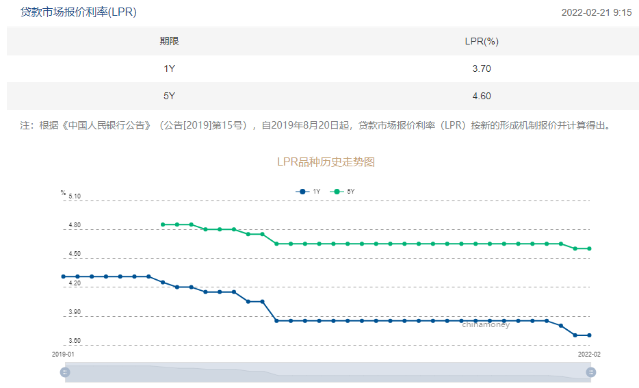 而在2021年12月和2022年1月份連續兩次LPR報價中,1年期連降,5年期降1次,以上LPR合計分別下降了15個基點和5個基點。