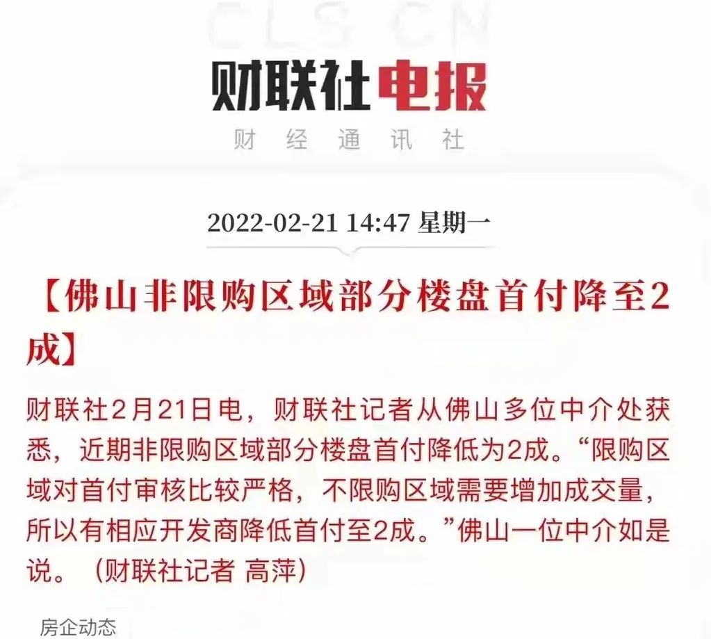 比如國統局最新數據,1月房價環比下降的城市減少。 4大行同步下調廣州地區房貸利率。 多地剛需首付比例最低可以兩成,比如最新佛山非限購區域。 2022年北京第一輪集中拍地,好像方方面面總體還可以……
