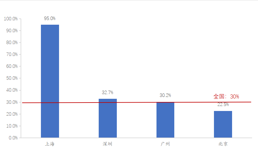 從一線城市業(yè)委會成立率來看,上海遙遙領先,截止2021年11月,上海市業(yè)委會組建率已超過95%。