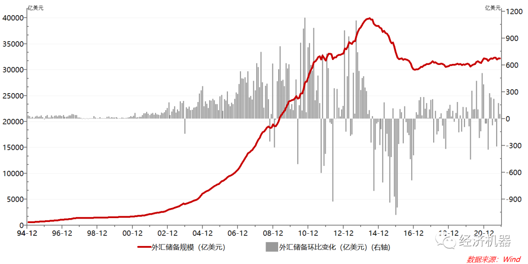 貿(mào)易高順差狀態(tài)持續(xù),但并未帶來外匯儲備增長。由于進口的超預期增長,11月我國貿(mào)易順差達717.2億美元,較上月高位回落,同比減少3.4%,低于預期的854億美元。但由于今年以來,出口持續(xù)強勁,我國貿(mào)易順差持續(xù)暴增,預計全年將達6400億美元。但高額貿(mào)易順差并未轉(zhuǎn)化為外匯儲備。11月份我國外匯儲備規(guī)模為3.22萬億美元,僅較去年底增加580億美元,幾乎沒有變化(圖3)。