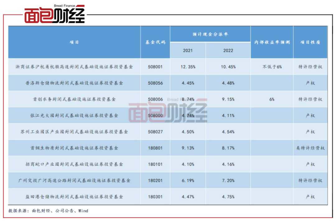 首批REITs中有兩只披露了內(nèi)部收益率,均為6%左右。