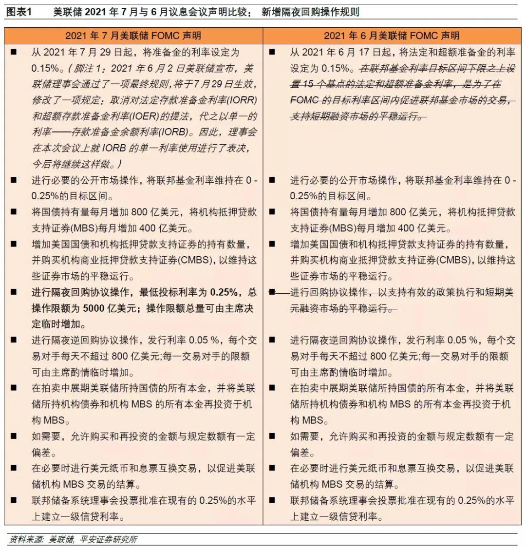 聯(lián)邦基金利率維持在0%-0.25%的目標區(qū)間不變,超額準備金利率(IOER)維持在0.15%不變,隔夜逆回購協(xié)議利率(ONRRP)維持在0.05%不變。