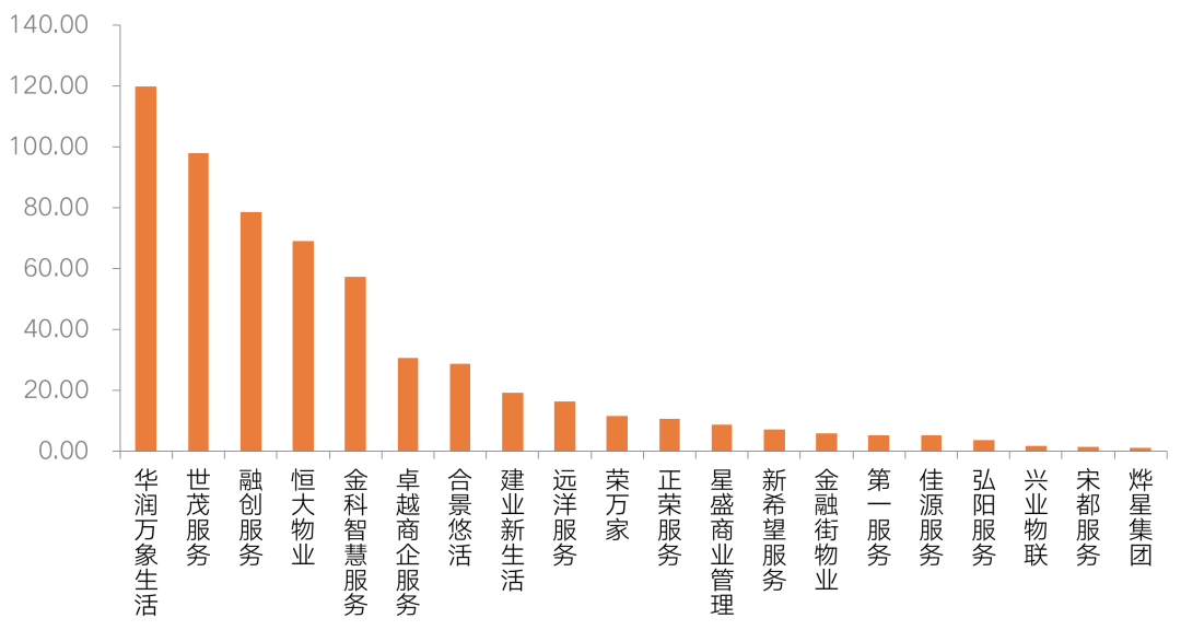2020年以來,新登陸港交所的物業服務企業達到21家,當中包括恒大物業、融創服務、世茂服務以及華潤萬象生活等規模較大的物企,這些企業的IPO所得凈額都超過了60億港元,其中華潤萬象生活更是超過了120億港元。