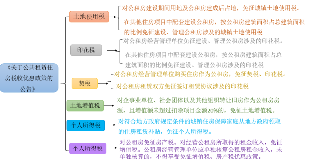 要更好的平衡收益率,就要選取適合的保障房項目,加以配合“優惠”的稅收政策。我國保障房體系主要分為廉租房、公租房(2014年后廉租房與公租房并軌運行)、經濟適用房、限價商品房和棚戶區改造安置住房。與其他幾種相比,公租房是租賃性住房,“保障性”突出,但是公租房相對較低的租金,也導致收益率達到發行公募REITs標準的難度。另一方面,較低的租金需要加以“優惠”的稅收政策輔助,才能更好的達到收益率的要求。