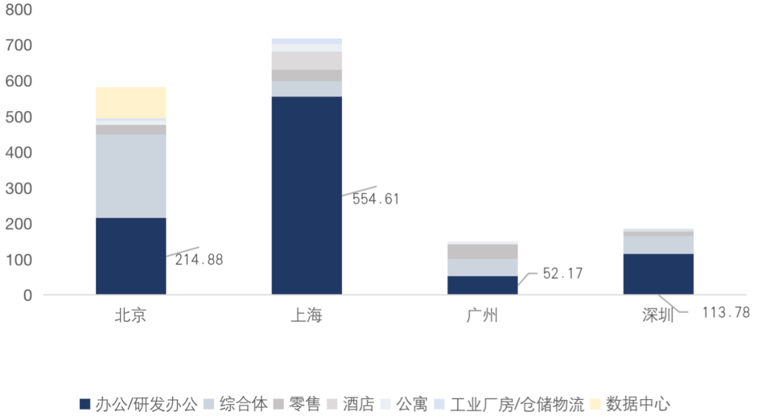 大宗投資者最青睞的物業類型依然為寫字樓,投資邏輯也未發生改變,一線城市核心地段的優質類商辦資產更受關注; 優越的地理位置,在各業態中較強的抗風險性及長期的投資價值均為寫字樓受資本長期追捧的重要因素。