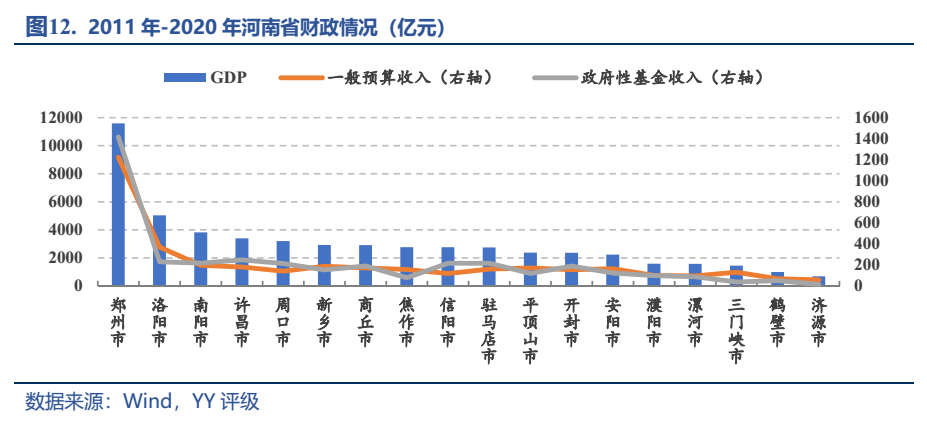 開封,歷史文化名城,工業(yè)基礎偏弱,近年經(jīng)濟主要依靠旅游業(yè)帶動三產(chǎn),發(fā)展偏緩慢,經(jīng)濟財政水平在省內(nèi)處于中等偏后,債務壓力不大。