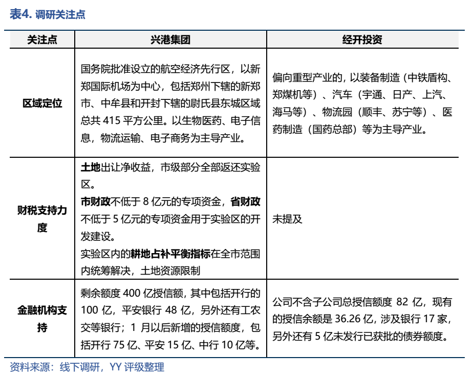 鄭州的區(qū)縣也相對發(fā)達,鄭東新區(qū)、航空港區(qū)和經(jīng)開區(qū)是三個重要的增長極。本次調(diào)研也正好邀請到了航空港區(qū)和經(jīng)開區(qū)的平臺:興港投資、經(jīng)開投資。對于這兩個平臺,投資者較為關注區(qū)域發(fā)展及債務情況,尤其是發(fā)展較快的航空港區(qū)。