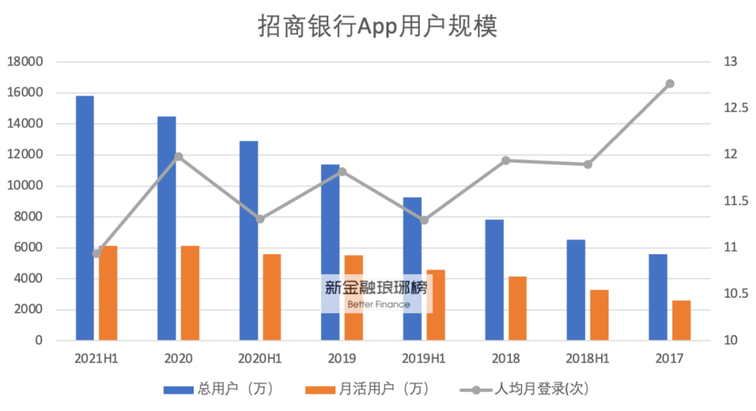 招行同時公布了招商銀行App與掌上生活A(yù)pp的最新數(shù)據(jù):兩大App的月活用戶(MAU)達1.05億戶,19個場景的MAU超過千萬。其中,招商銀行App累計用戶數(shù)1.58億戶,掌上生活A(yù)pp累計用戶數(shù)1.17億戶。