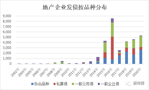 首先來看看地產。2015年公司債新政開始落地實施,交易所私募債和公司債的發(fā)行人大擴容時,非金融企業(yè)債務融資工具和企業(yè)債按照國家宏觀調控政策,對地產企業(yè)的融資需求保持克制。交易所敏銳把握到了這個群體的融資需求,為地產企業(yè)敞開融資大門。
