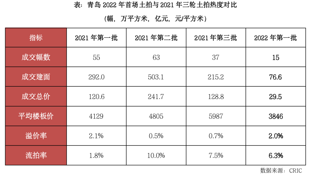 02 供地質量不佳疊加樓市遇冷致青島首輪土拍熱度仍在低位