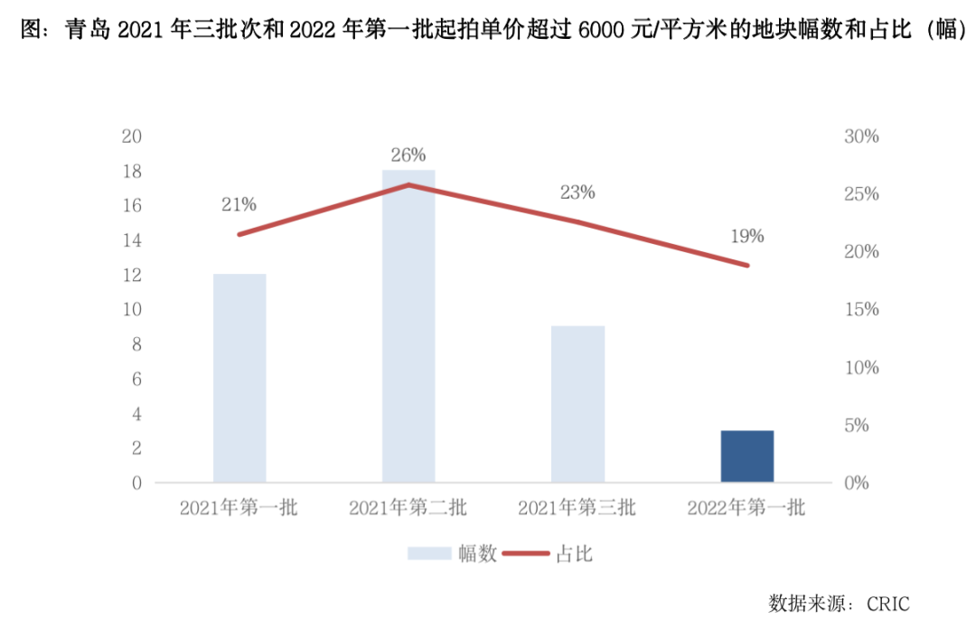 青島此次土拍表現仍舊延續了去年三批次的平穩。