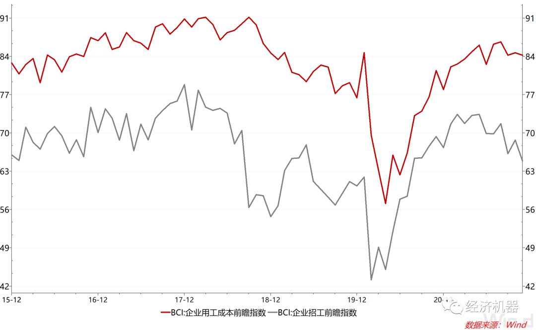 這可能是居民整體收入增長降速有關,短期內難以大幅改善。11月最新BCI前瞻指數也顯示,未來企業招工將會回落,相應的企業用工成本(居民收入)也會隨之下滑。