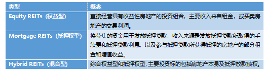 美國市場主要有Equity REITs(權益型)、Mortgage REITs(抵押權型)和Hybrid REITs(混合型)三種基本形態,上市REITs主要以Equity REITs為主。