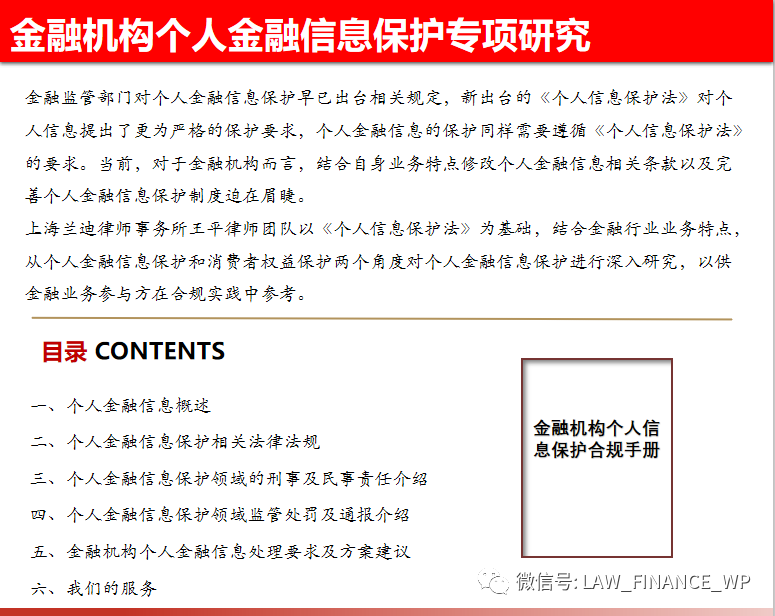 上海蘭迪律師事務(wù)所王平律師團(tuán)隊以《個人信息保護(hù)法》為基礎(chǔ),結(jié)合金融行業(yè)業(yè)務(wù)特點,從個人金融信息保護(hù)和消費者權(quán)益保護(hù)兩個角度對個人金融信息保護(hù)進(jìn)行深入研究,以供金融業(yè)務(wù)參與方在合規(guī)實踐中參考。