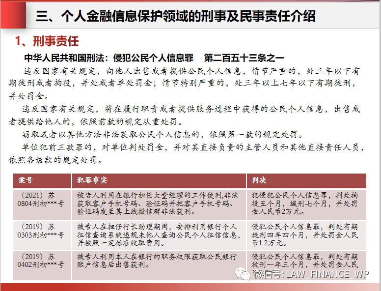 三、個人金融信息保護(hù)領(lǐng)域的刑事及民事責(zé)任