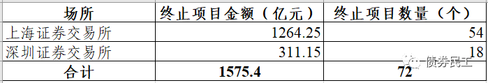 分交易所情況來看,上海證券交易所終止金額為66億元,占比為80.49%;深圳證券交易所終止金額為16億元,占比為19.51%。