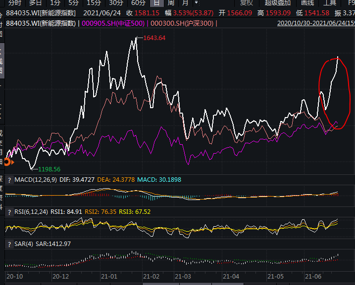 進入2021年,新能源版塊也經歷了大幅回撤,但是最先修復失地并創新高的。