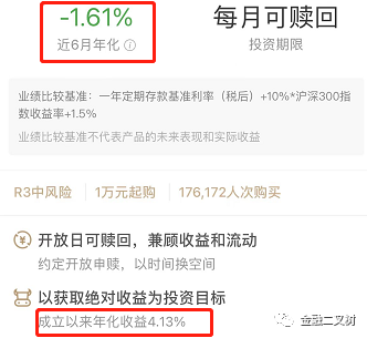 預計可贖回日是6月15日到20日,假如你在6月15日發起贖回,那么到賬時間要到25號!整整10天!因為20號開放期結束后才開始進行份額確認。小編再多叨叨兩句,這個是一個月開的產品,首先在認購的時候資金就會占4天,贖回又要占10天,真要是當做流動性高的產品來投,怕不是個瓜。當然這個產品的月開就仿佛是個玩笑,小編下面會詳細說說。