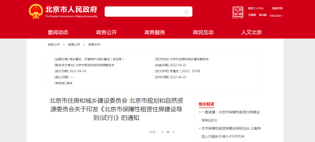 4月21日,北京市住房和城鄉(xiāng)建設委員會、北京市規(guī)劃和自然資源委員會發(fā)布《北京市保障性租賃住房建設導則(試行)》(以下簡稱《導則》)。從整體規(guī)劃、配套設施、單體設計、室內(nèi)裝修、應用技術等方面,對北京的保障性租賃住房的提出了具體的標準和要求,能夠有效地指導未來北京市保障性租賃住房的建設和發(fā)展。該政策的出臺標志著北京保障性租賃住房的樣貌和功能已基本確定。