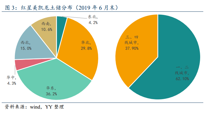 紅星美凱龍從2010年開始進(jìn)入地產(chǎn)領(lǐng)域,主要是與家居商城捆綁,在紅星美凱龍家居商城附近拿一部分商住用地,由于家居商城的招商引資作用受政府歡迎,因此捆綁拿地有一定優(yōu)勢(shì)。進(jìn)軍地產(chǎn)總體思路比較正確,也不算偏離主業(yè)。紅星美凱龍房地產(chǎn)板塊的核心品牌包括紅星國際廣場(chǎng)、“愛琴海”購物中心,截至 2019 年 6 月末,已開業(yè) 19 家愛琴海商場(chǎng),另有 56 家商場(chǎng)計(jì)劃開業(yè)。