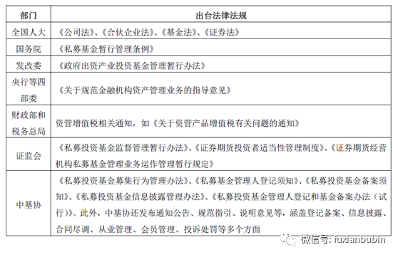 上述規定參見《證券投資基金法》;《私募投資基金監督管理暫行辦法》(證監會令第105號);《中華人民共和國公司法》;《中華人民共和國合伙企業法》 | |