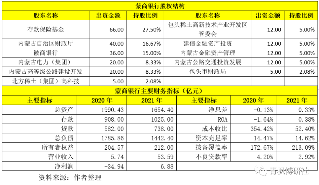 (一)蒙商銀行:取代包商銀行,2021年底總資產縮表至1654億元