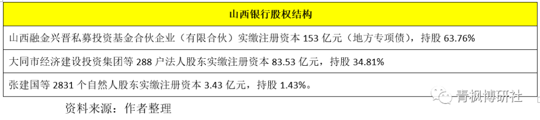 2、山西銀行的注冊資本達到239.96億(山西發行的153億元地方專項債便是為了注資山西銀行),原晉商銀行副行長高計亮任山西銀行董事長。