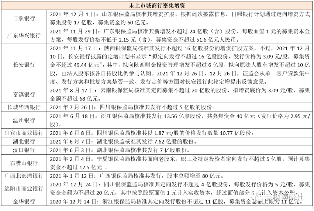 我們預計,在上市、化險等動力下,未上市城商行的增資潮仍將持續。
