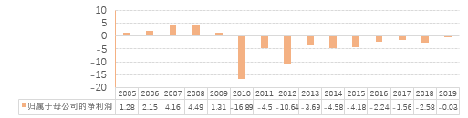 單從公司的營業收入上看,從05年上市到08年,企業的營業收入增速可觀。08年之后收入大幅下滑,之后緩慢回升,但是縱觀整個時間線數據,08年的收入是巔峰期。