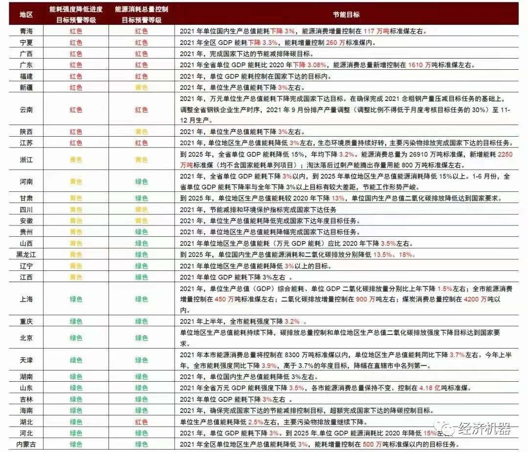 碳中和/碳達峰。碳中和是國家對國際社會做出的莊嚴承諾和“一號工程”,是無比正確和具有戰略意義的。正因為如此,很多地方把其放在“壓倒一切”的優先地位,尤其在能耗雙控方面,更是沒有任何商量的余地,哪怕停工停產,都必須要完成。如前面所提,由于今年上半年經濟需求不錯,導致能耗總量出現上升,使部分省份(比如廣東、廣西、江蘇等)能耗雙控完成難度加大,遭到有關方面約談,導致接下來的一刀切,比如最近江浙地區的工業企業大面積“斷電”(圖7)。正是看到這種“運動式減碳”的危險苗頭,中央在二季度宏觀形勢研判會議上提出,不搞運動式減碳。但很可惜,在強大的慣性和考核硬約束下,運動式減碳最后競一語成讖,實在令人唏噓。