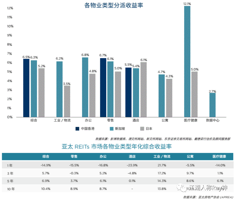 圖4:亞洲各類REITs的股息率與綜合收益率(2020年)