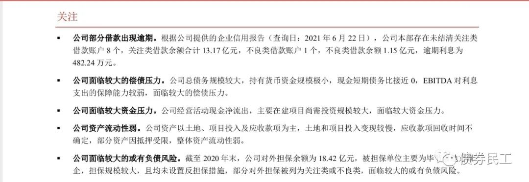 3、遵義市播州區(qū)城市建設(shè)投資經(jīng)營(yíng)(集團(tuán))有限公司(以下簡(jiǎn)稱“播州建投”)。根據(jù)中誠(chéng)信國(guó)際2021年6月29日出具的跟蹤評(píng)級(jí)報(bào)告,播州建投存在多筆關(guān)注類(lèi)、不良貸款、欠息、被追償?shù)炔涣加涗洠乙呀?jīng)被納入失信被執(zhí)行人名單。播州建投的控股股東為遵義道橋建設(shè)(集團(tuán))有限公司,播州建投最新主體評(píng)級(jí)為AA-,評(píng)級(jí)展望為負(fù)面,目前存續(xù)債券2只,分別為“17遵義播投債01”(企業(yè)債券,債券余額為6.4億元)、“PR播投02”(企業(yè)債券,債券余額為5.6億元)。