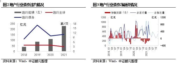 截至2021年3月末,出現(xiàn)信用風(fēng)險(xiǎn)的房地產(chǎn)企業(yè)共計(jì)12家,違約債券46只,違約規(guī)模約466億元。截至4月21日,已違約的地產(chǎn)主體存續(xù)的未違約債券規(guī)模約260億元。從凈融資情況看,地產(chǎn)行業(yè)2019年來的凈融資明顯回落,但到期壓力從2020年開始明顯增長,3月和4月在寬松市場(chǎng)融資環(huán)境中,發(fā)行規(guī)模大幅增長,一定程度上緩解了資金壓力。但受新冠疫情影響,企業(yè)收入的恢復(fù)有所滯后。受行業(yè)政策持續(xù)收緊影響,2020年8月以來,地產(chǎn)行業(yè)凈融資持續(xù)為負(fù),后續(xù)償債壓力依然很大。