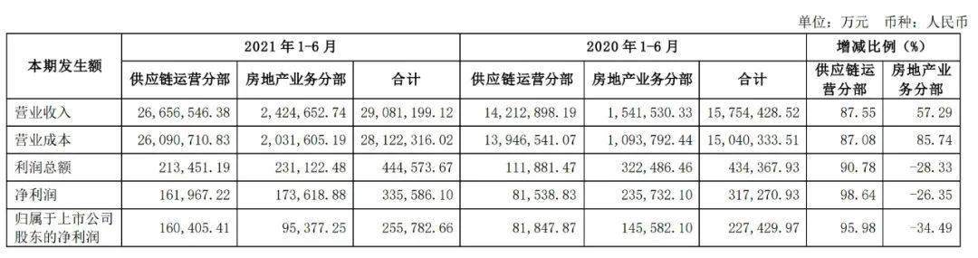 建發股份是建發集團旗下上市平臺之一,另外兩家是建發國際和建發物業。根據建發股份最新半年報介紹,供應鏈運營業務和房地產業務是其兩大主業。