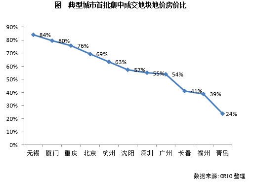 相比之下,地塊質量相對欠佳的青島、福州、長春等城市地房比水平處于相對低位,多在40%以下,依然保持較高的盈利率。