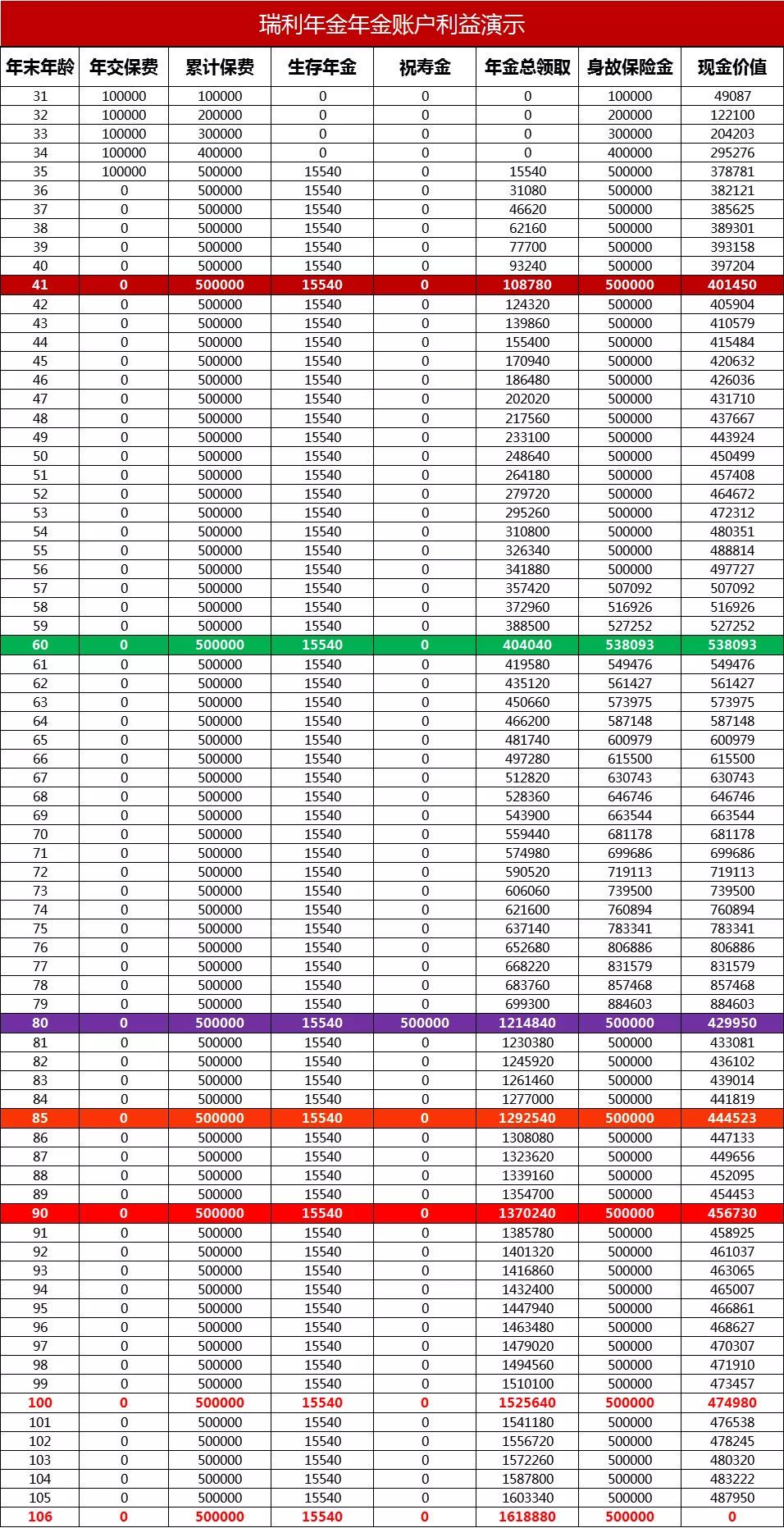 生存年金15540元*41年?身故保障金783341元=142萬(wàn)