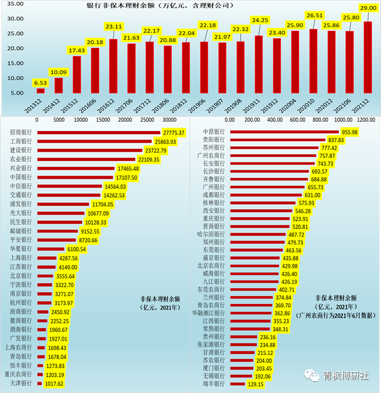 1、非保本理財余額超過1000億元的銀行有29家,這29家銀行的非保本理財余額合計達到25.66萬億,占全部銀行業(yè)理財?shù)谋壤哌_88%以上。