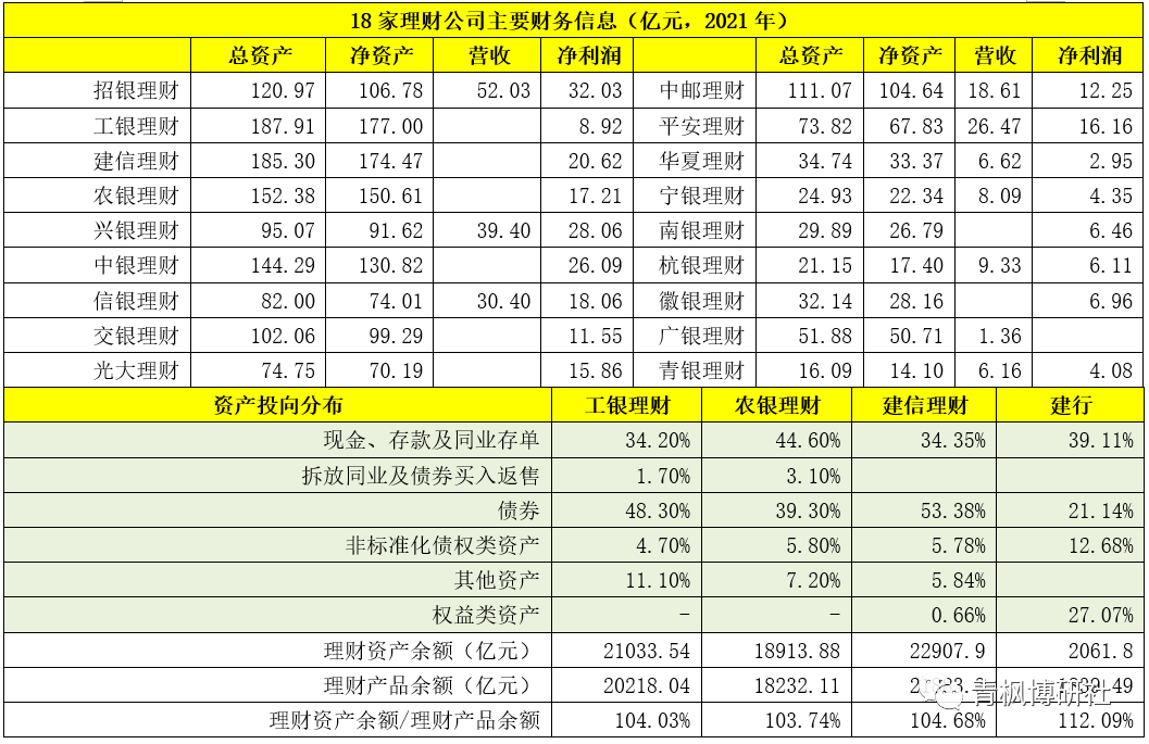 三、部分理財公司信息梳理(2021年底數(shù)據(jù))