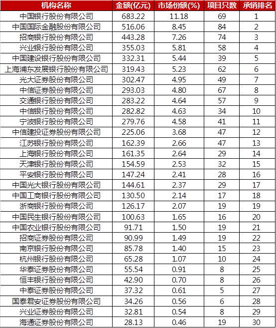 圖表2. 銀保監會主管ABS承銷情況(部分)