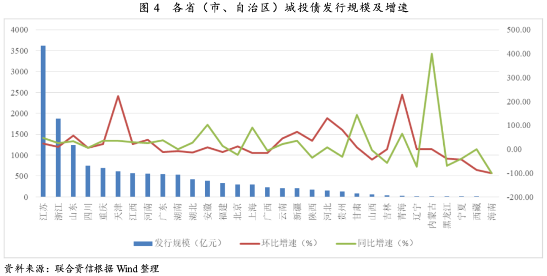 三季度城投債發行數量及規模同比和環比均顯著增長。