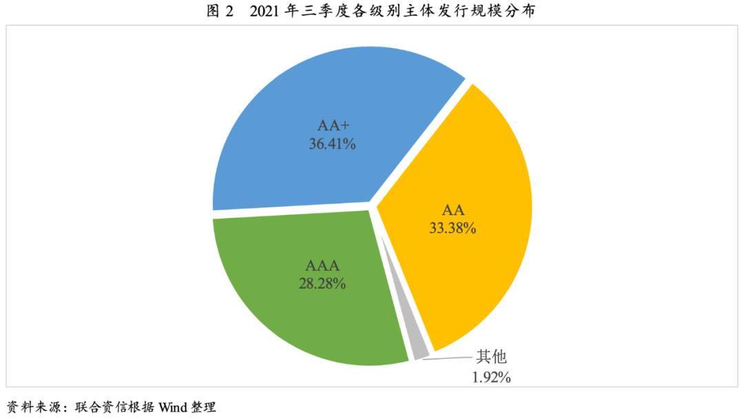 三季度房地產等行業風險事件頻發,疊加監管政策收緊的持續影響,投資者風險偏好持續降低,新發行城投債的級別中樞持續上移,AAA級及AA+級城投債發行規模占比持續提升。