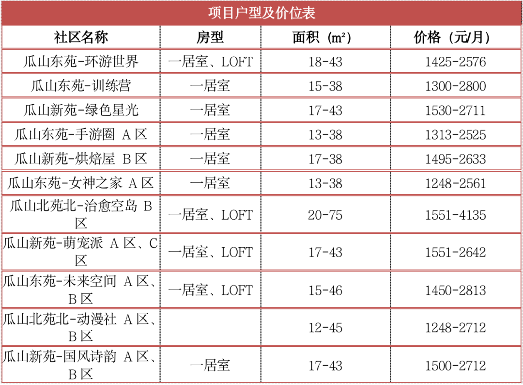 瓜山社區融合長租公寓、文創辦公、民宿、商業等多元業態,整體打造綜合型租賃社區。