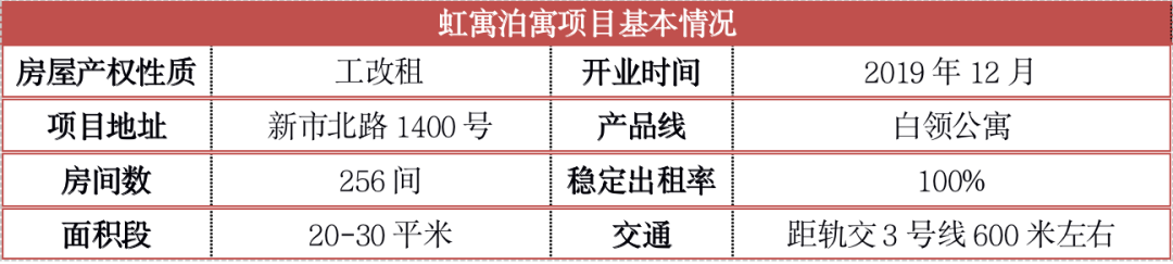 虹寓泊寓項目本身成本相對較低,周邊生活商業配套一應俱全,改造完成后輻射周邊企業復旦大學、B站、互聯網科技公司的等客群,客戶學歷層次較高,整體滿意度較高,目前經營情況較好。