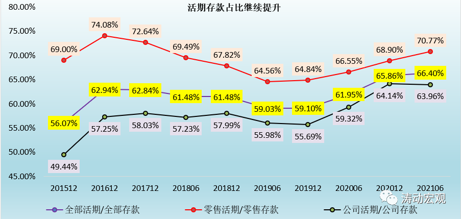 2019年以來招行提升了對活期存款的重視程度。今年上半年招行的活期存款繼續(xù)保持穩(wěn)定增長,其中零售活期存款與公司活期存款分別較2020年底增長8.37%和6.37%。截至2021年6月,招行零售存款與公司存款中,活期存款占比分別達到70.77%和63.96%,全部活期存款占比亦達到66.40%,較2020年底提升了0.54個百分點(零售活期存款占比提升1.87個百分點),應該說這一占比在國內銀行中基本上已經處于國內銀行業(yè)非常高的位置。