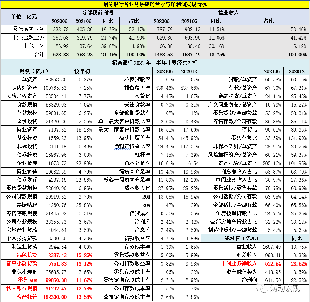3、今年上半年,招行金葵花及以上客戶數和私人客戶數分別凈增33.48萬戶和1.20萬戶,公司客戶數凈增4.36萬戶、小企業(yè)客戶數凈增4.34萬戶、信用卡流通卡凈增227.03萬張。特別是,招行App理財投資客戶數大幅增長530.88萬戶(較2020年大幅增長51.39%)。