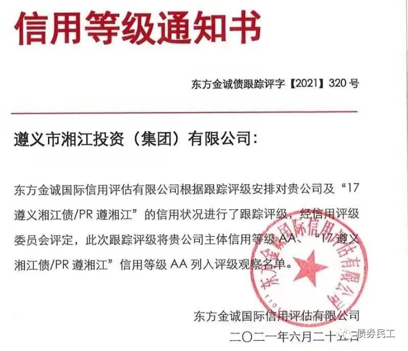 2、遵義市湘江投資(集團(tuán))有限公司(以下簡稱“遵義湘江投資”)的主體信用等級(jí)AA列入評(píng)級(jí)觀察名單。遵義湘江投資主要是承擔(dān)基礎(chǔ)設(shè)施建設(shè)業(yè)務(wù)、租賃業(yè)務(wù)和保障性住房建設(shè)業(yè)務(wù)等。